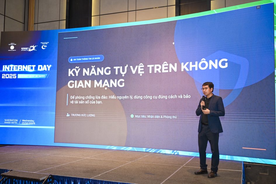 Trong bài tham luận với chủ đề “Tự vệ số: Kỹ năng sống còn để tránh bẫy trên không gian mạng” tại sự kiện Internet Day 2025 ngày 17/12 vừa qua, ông Trương Đức Lượng – Chủ tịch HĐQT Công ty cổ phần An ninh mạng Việt Nam cho rằng lừa đảo trực tuyến hiện nay không còn là những kịch bản quá xa lạ, mà thường xuất hiện ngay trong các tình huống quen thuộc của đời sống số hằng ngày.