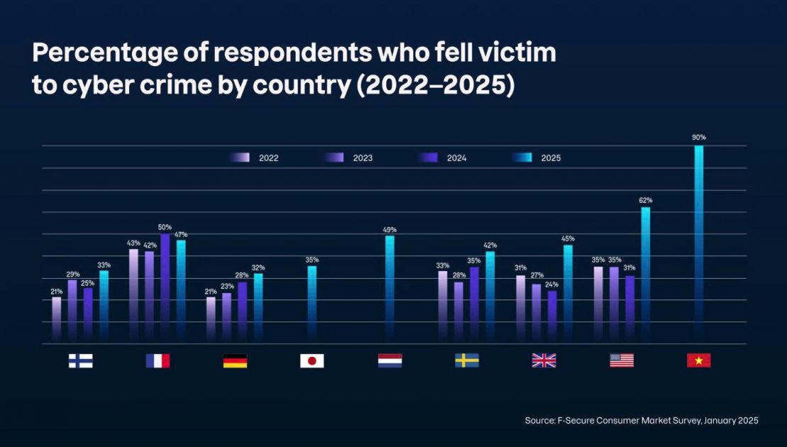 Đáng chú ý, trong khảo sát của F-Secure cho thấy có đến 90% người dùng tại Việt Nam bị lừa đảo trực tuyến dù nhiều người tin rằng mình đã “biết cách nhận diện” các chiêu trò lừa đảo. Con số này cho thấy các “bẫy mạng” đang thay đổi nhanh đến mức ngay cả người dùng cảnh giác cũng dễ dàng bị đánh lừa.