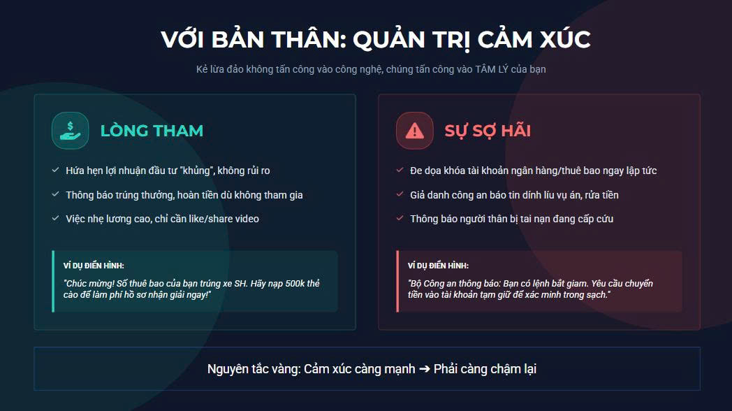 Rất nhiều vụ việc mất tiền, mất dữ liệu hay chiếm đoạt tài khoản xảy ra không phải vì người dùng hoàn toàn thiếu hiểu biết, mà vì các thủ đoạn lừa đảo ngày nay được thiết kế tinh vi, đánh thẳng vào tâm lý tin tưởng, sự vội vàng hoặc cảm giác hoảng loạn khi nhận được yêu cầu bất ngờ.